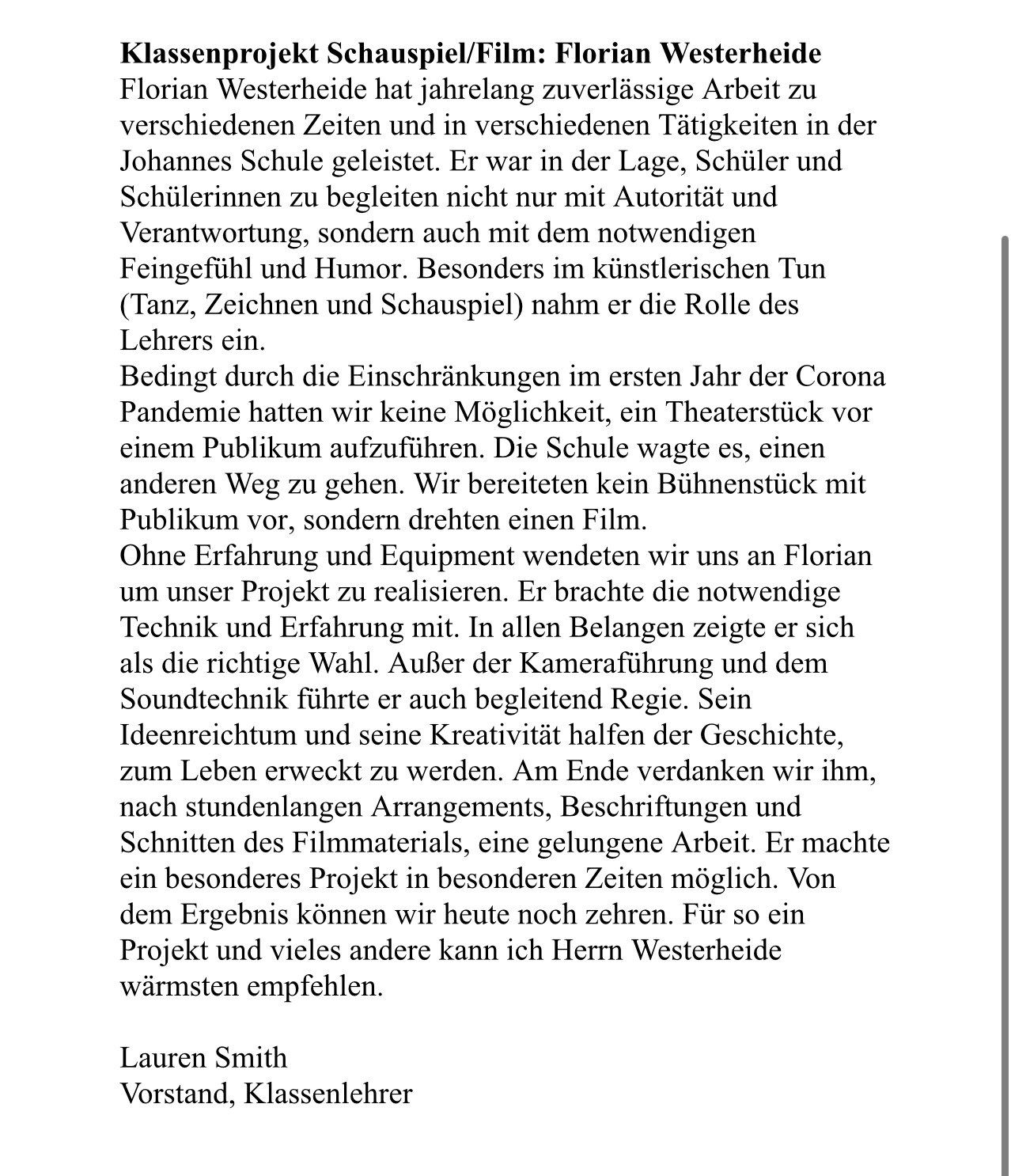 Hier ein Paar Auszüge von Schüler*innen und auftraggeber*innen die uns freundlicherweise eine Bestätigung zu unserem Bildungsangebot zugesendet haben: