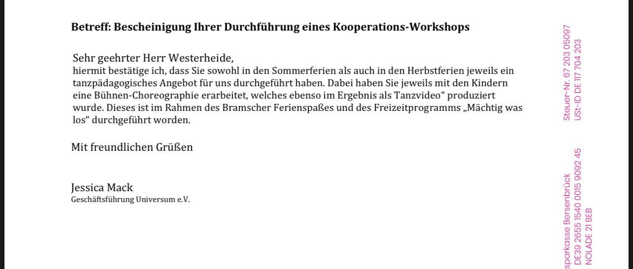 Hier ein Paar Auszüge von Schüler*innen und auftraggeber*innen die uns freundlicherweise eine Bestätigung zu unserem Bildungsangebot zugesendet haben:
